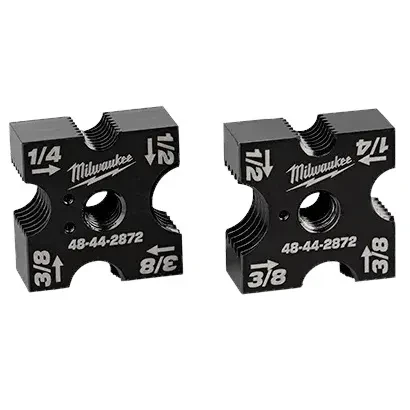 <div class='product attribute description'> <div class='value'><p> </p><p>Características</p> <ul class='product-items-description'> <li> Corta acero dulce de 1/4", 3/8" y 1/2", acero inoxidable de 1/4" y 3/8", varilla roscada gruesa.</li> <li> Marcas de puntos en los troqueles para distinguir los troqueles superiores e inferiores.</li> <li> Cambios sencillos de troquel mediante llave Allen almacenada en la herramienta.</li> <li> Los troqueles de corte giratorios de cuatro lados le permiten cortar tres tamaños diferentes de varilla roscada con la misma herramienta.</li> <li> Un punto en el troquel superior se insertará en la mandíbula superior móvil.</li> <li> La geometría óptima de la hoja ofrece cortes limpios y sin rebabas para roscar tuercas a mano.</li> <li> Número de pieza en el troquel para una fácil identificación.</li> <li> Corte más seguro, sin astillas ni chispas.</li> <li> Marcas de tamaño en matrices para corresponder con el tamaño de la varilla roscada.</li> <li> Dos puntos en el troquel inferior para insertarlos en la mandíbula inferior fija.</li> </ul> </p><p>Incluye</p> <ul class='product-items-description'> <li> ( 1 ) Juego de troqueles de corte superior e inferior.</li> </ul> </div> </div>Archivos y documentos
